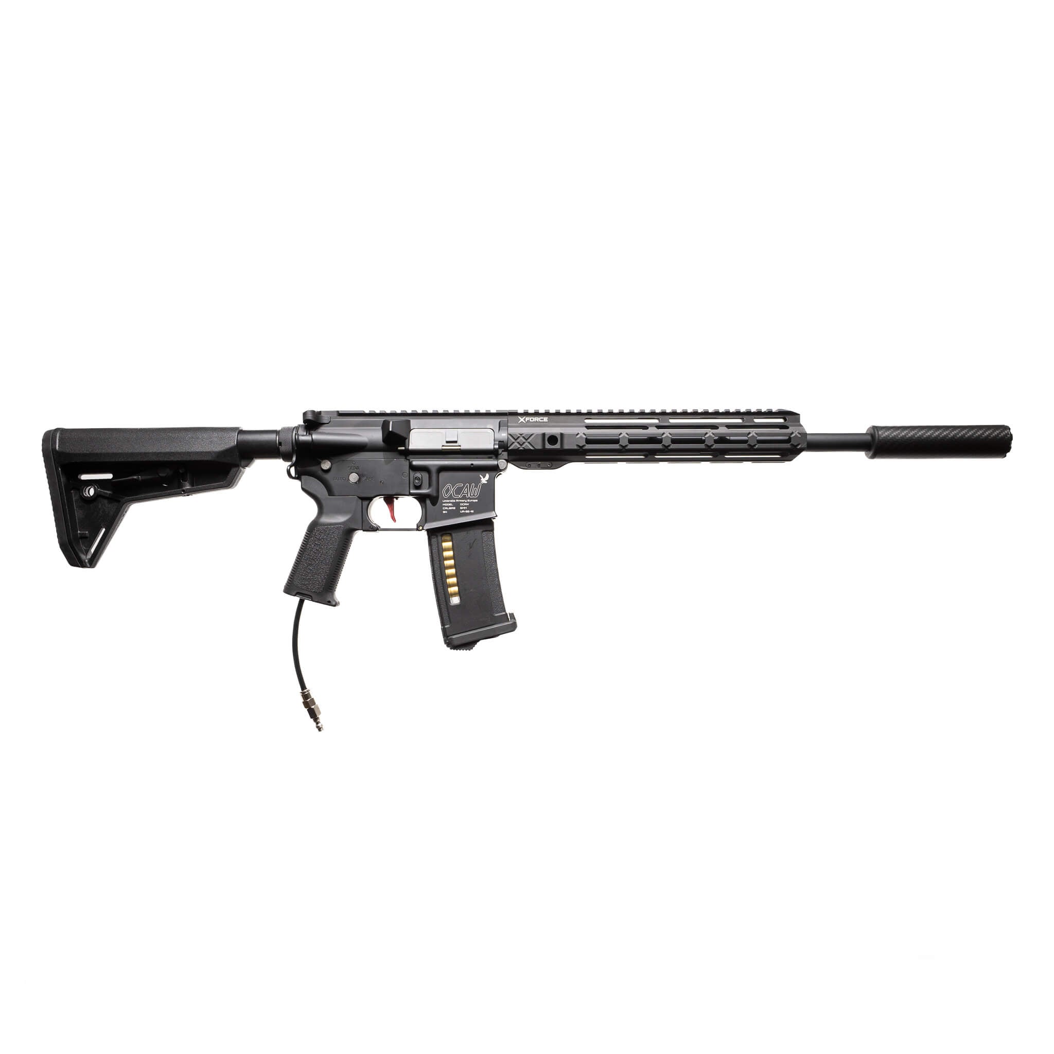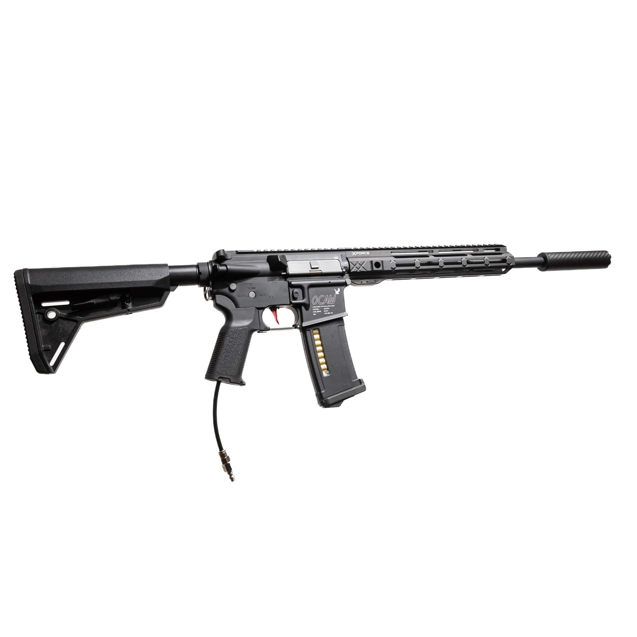 High-performance Umbrella Armory HPA Carbine optimized for long-range precision and heavy BB weights. Features the GATE PULSAR D HPA Engine, Bluetooth-enabled Expert Trigger Board, and the XFORCE 6.01 mm stainless steel barrel system.